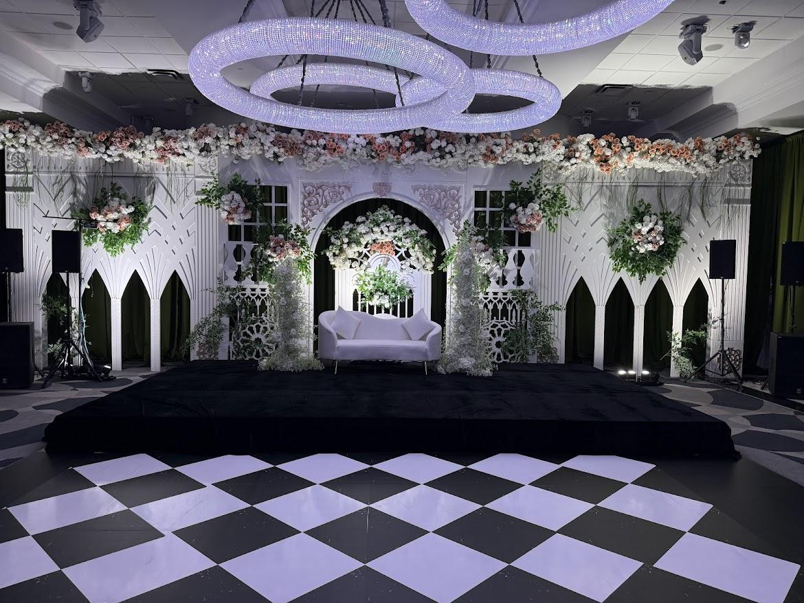 Space, catering, set-up support, tables, chairs, linens, dinnerware, professional servers and bartenders. Plus full technical support and equipment, with colour-changing chandeliers and wall lights, easily customizable to match your perfect wedding palette. From your first tour to your final toast, our dedicated team ensures your wedding day unfolds flawlessly.